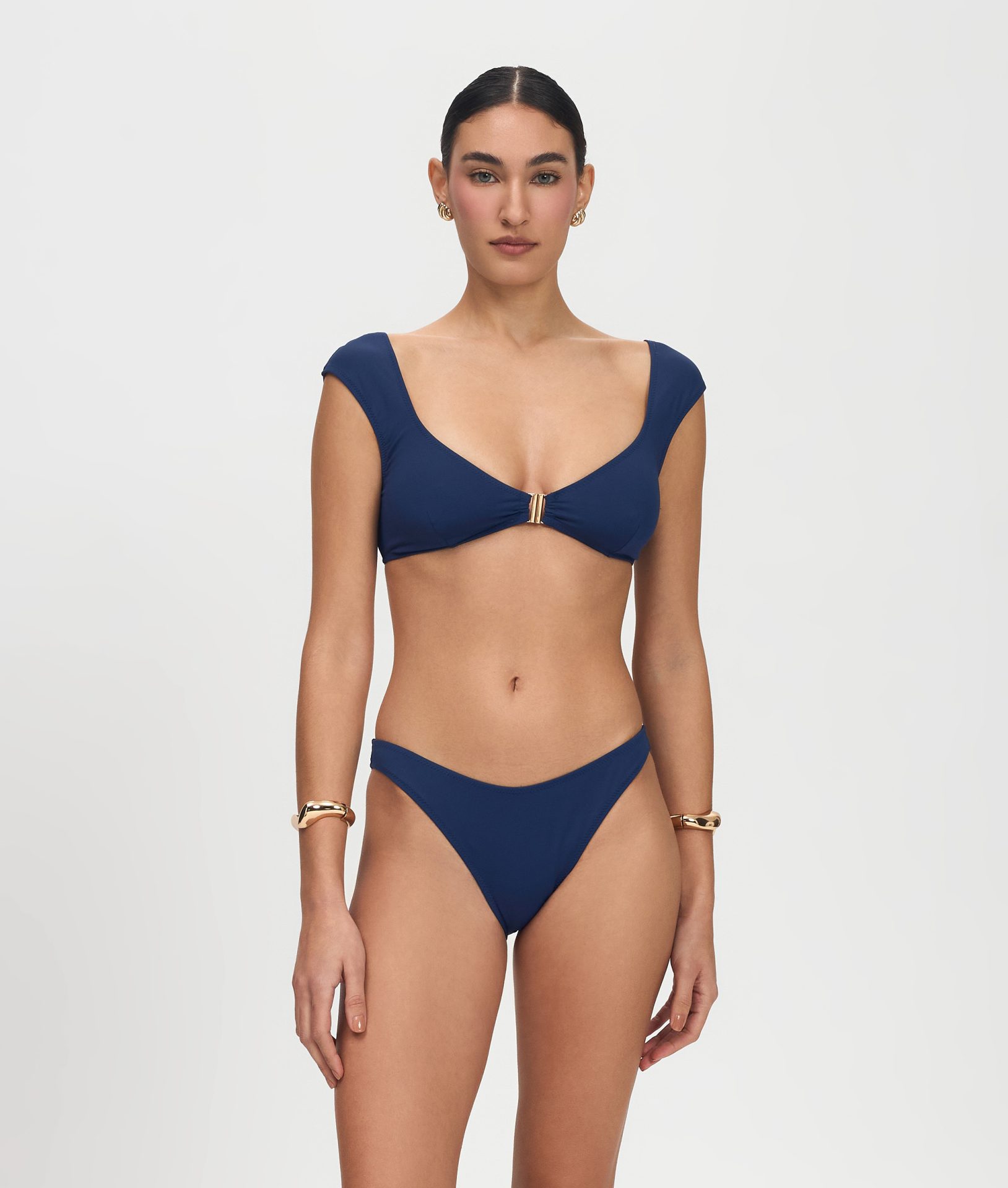 Bikini with wide straps and a front gold-tone clasp closure